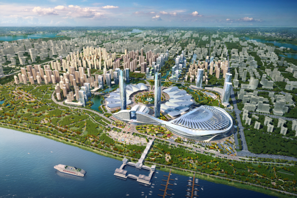 Wuhan International Expo Center is a key project in Hubei Province and Wuhan City. It is the "tipping point" for the development and construction of the Wuhan Sixin New Area. The project covers an area of 6,253 mu with a total investment of 50 billion yuan, including Phase I Exhibition Hall, Phase II International Conference Center, InterContinental Wuhan Hotel, Holiday Inn & Suites, Han Exhibition Hall, Global (Cultural) Center, super high-rise office building, commercial real estate development, landscape water system, and ecological residential area. It is an integrated multi-functional international expo city dominated by the exhibition, and integrating exhibition, science and technology, culture, business, leisure, tourism, and accommodation. Located in the riverside section of the second ring road in Wuhan, Wuhan International Expo Center can be called the "Yangtze River Exhibition Hall". The Yangtze River waterfront reaches